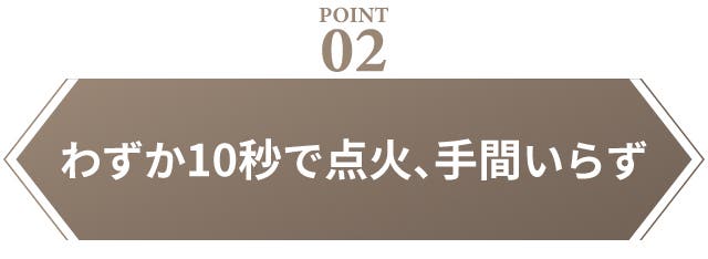 - わずか10秒で点火完了!無煙・低臭設計で匂いがつく心配がなく、室内でも安心して使用可能。