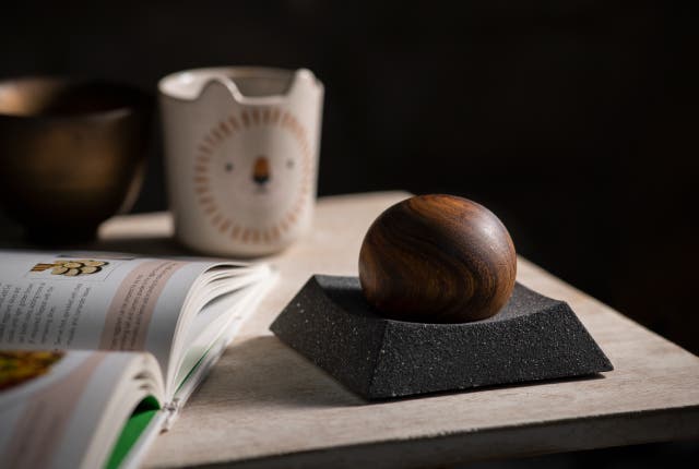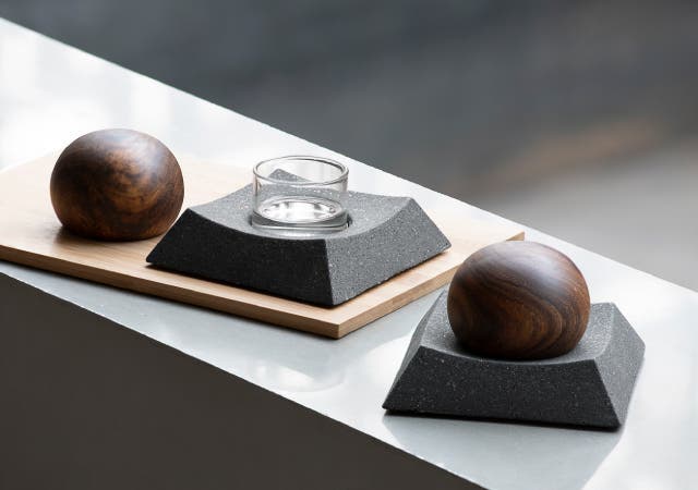 素材:ベース-鋳石(コンクリート)、ガラスカップ-ホウケイ酸ガラス、蓋-木材
