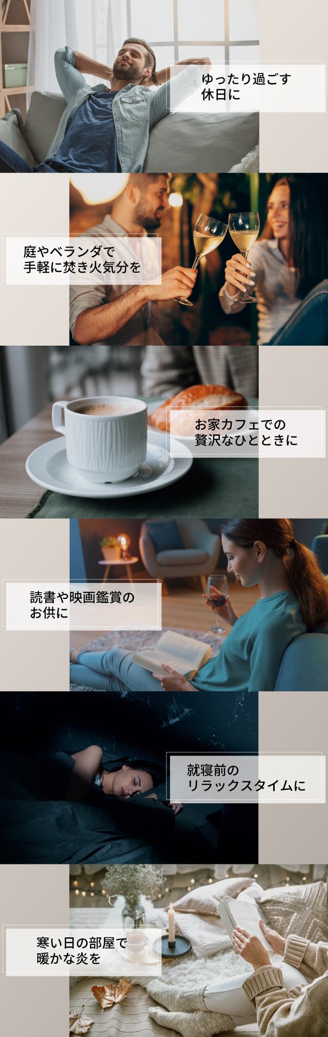 - 炎のゆらぎを眺めるだけで心が落ち着く。読書や晩酌のお供に、穏やかなリラックスタイムを。