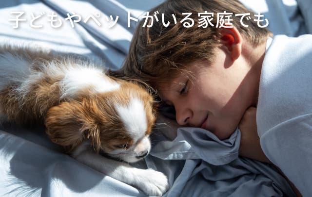 また、安全に配慮した設計で、赤ちゃんやペットがいる家庭でもお使いいただけます。