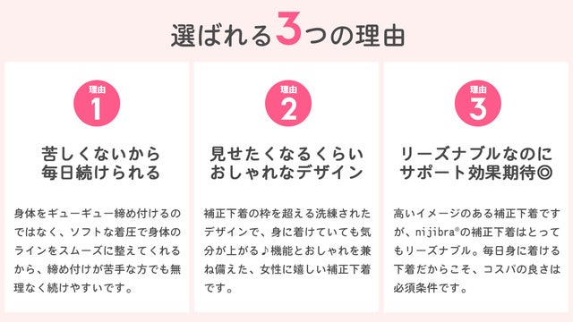❚nijibra®「魔法のくびれ」ブラキャミソールが選ばれる3つの理由