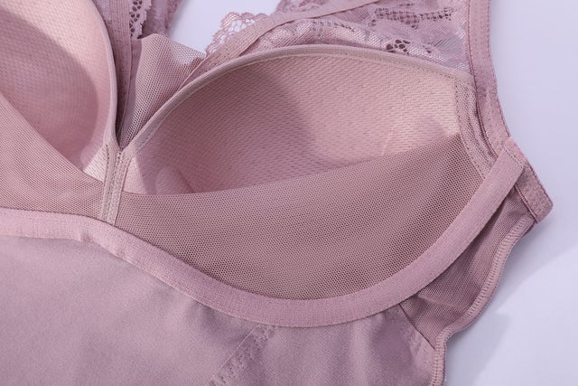 カップの内側に施したメッシュ素材のパネルが、バストを優しく包み込みながら、形崩れを防いでくれます。