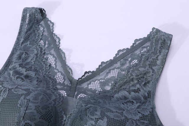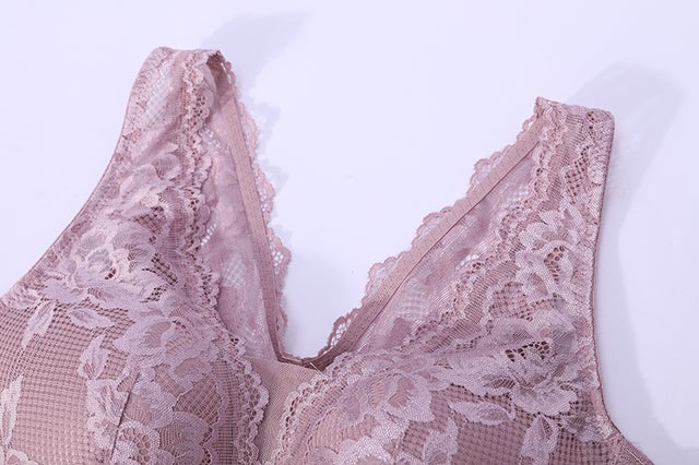 クラシカルなフラワーモチーフのレースをカップから肩まであしらい、上品な大人デザインに仕上げました。