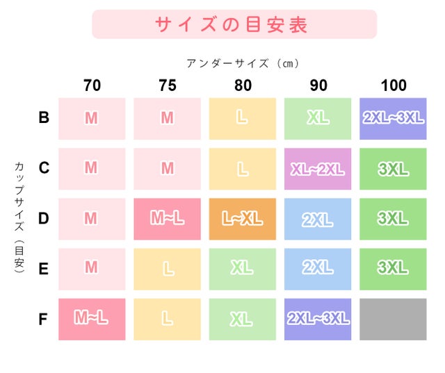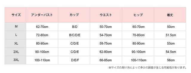 ※サイズの目安表はあくまでも参考用になります。着用感は個人差がございますので、予めご了承ください。