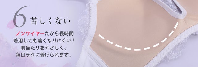 - ノンワイヤーだから肌当たりがやさしく、毎日ラクに着けられます。