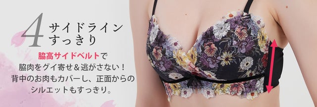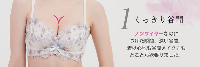 痛くなりにくい!ワイヤーなしでも土台部分で胸を支えて寄せた谷間をKEEP!
