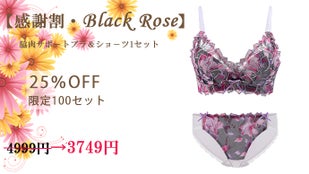 【感謝割り25%OFF・限定100セット】ブラックローズ脇肉サポートブラ1セット