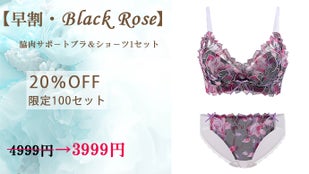 【早割20%OFF・限定100セット】ブラックローズ脇肉サポートブラ1セット