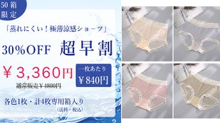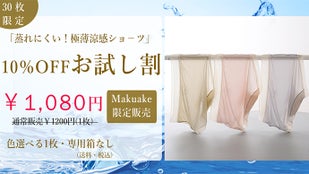 10%OFF【Makuake限定 お試し割】蒸れにくい極薄涼感ショ-ツ1枚