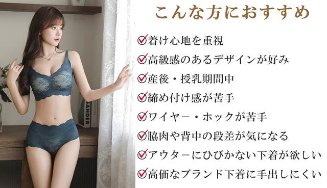 【お試し割15%OFF】選べる2色「裸の気持ち」レースシームレスブラセット