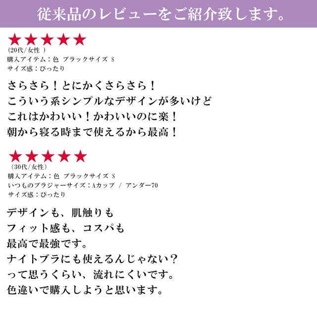 A:運動時にもご利用いただけます。 「裸の気持ち」レ-スシ-ムレスブラは上下左右からバストをしっかり支えてくれるため、運動中もバストをしっかり支えてくれます。