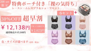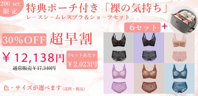 【超早割30%OFF】特典ポーチ付き全6色入り裸の気持レースシームレスブラセット