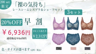 【早割20%OFF】選べる3色「裸の気持ち」レースシームレスブラセット