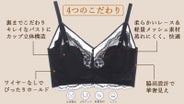 ④なめらかなエレガントレ-スでバスト全体をすっぽりと覆うレースカップを採用し、胸を優しく包み込みながらスリムシルエットを実現。