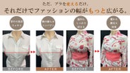 ①計算された各パ-ツで立体設計。胸の形にこだわった理想の着やせシルエット。