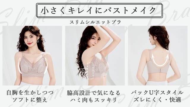 - 滑らかな素材ですっぽり優しく包み込む、自胸を生かしつつソフトに整えてくれるスリムシルエットブラ