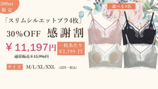 30%OFF【選べる4枚セット・感謝割】スリムシルエットブラ4枚入り