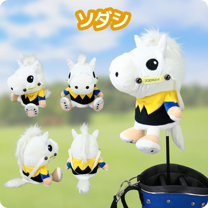 二木ゴルフとノーザンホースパークでしか入手できない、オーナー承認済のぬいぐるみ型ヘッドカバーを、第3弾までのヘッドカバーを担当した株式会社トレイル様ご協力の元、制作・販売します。