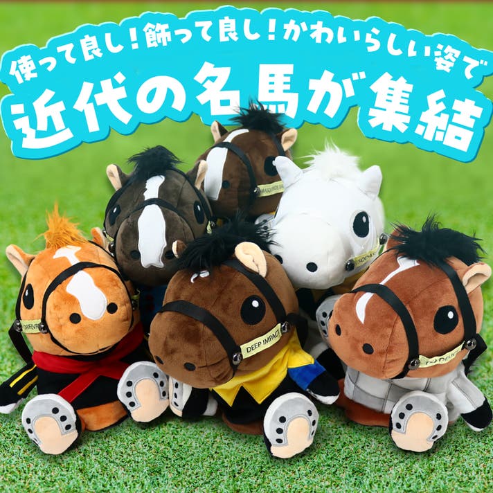 - ディープインパクト、イクイノックス、ソダシなど近年の名馬が可愛いぬいぐるみ型ヘッドカバーで登場