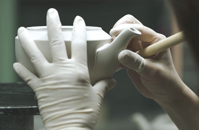 粘土を捨て、中に膜のように残った泥を乾燥させて取り出す技法です。