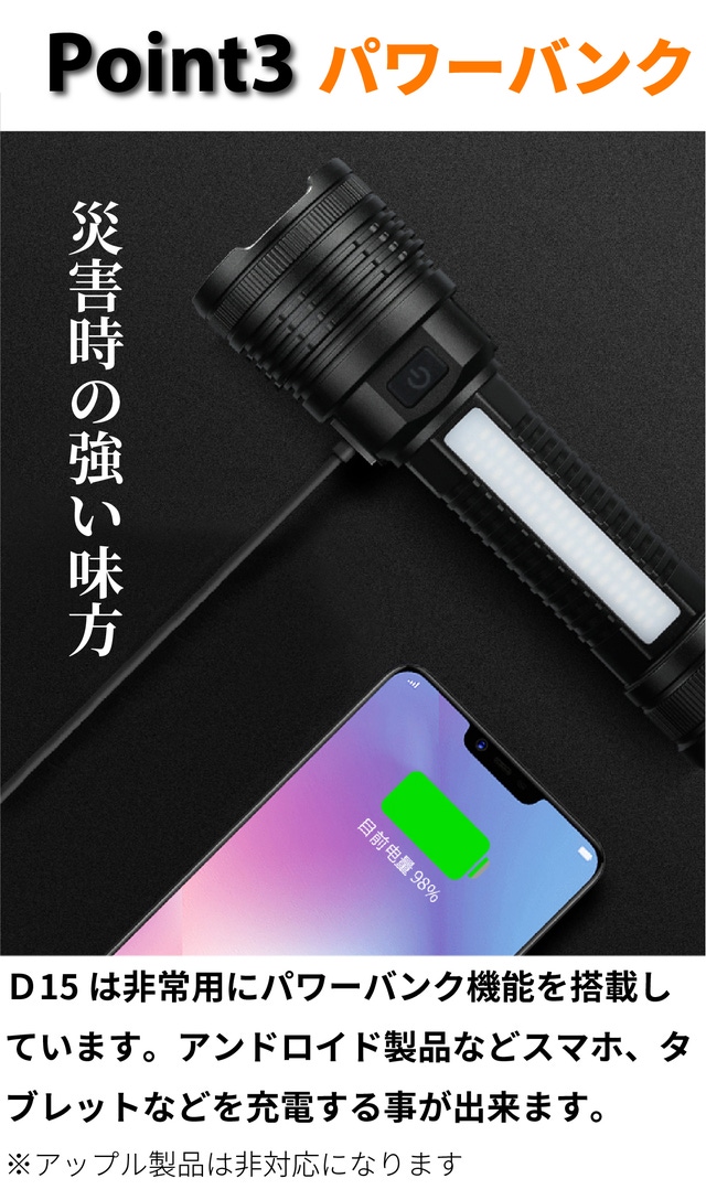 【超得3個セット割】D15LED懐中電灯 3セット
