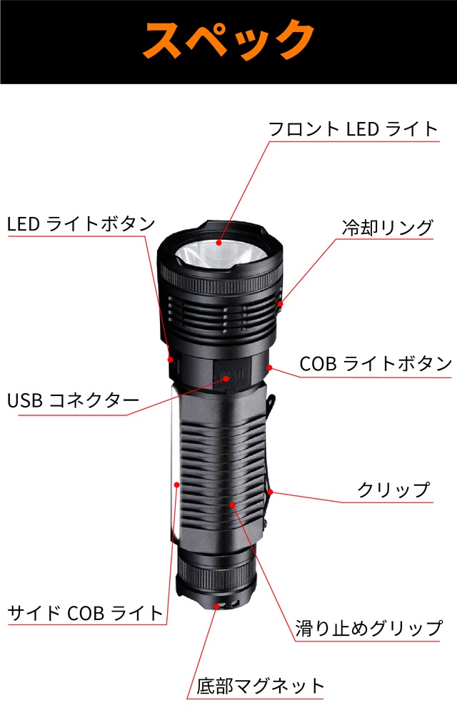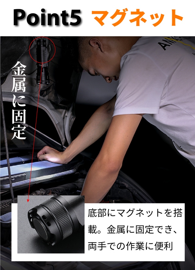 - USB充電と便利な強力マグネットを底部に搭載、様々なシーンで活躍