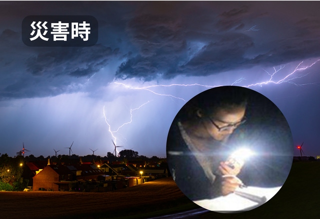 ※災害時には広範囲を長時間照らせるミディアムモードが活躍