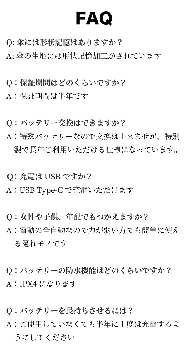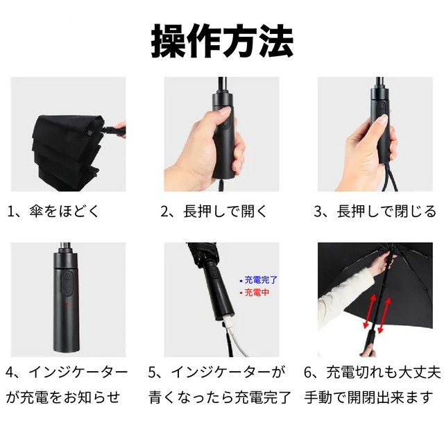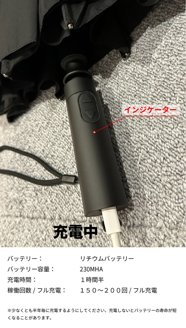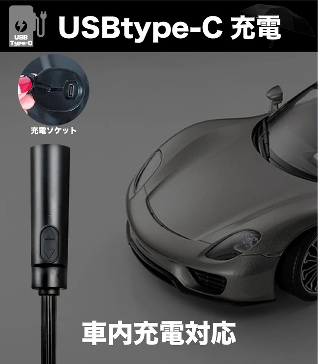- USB Type-C充電(車内充電対応)ワイドな104cmサイズが雨をガード
