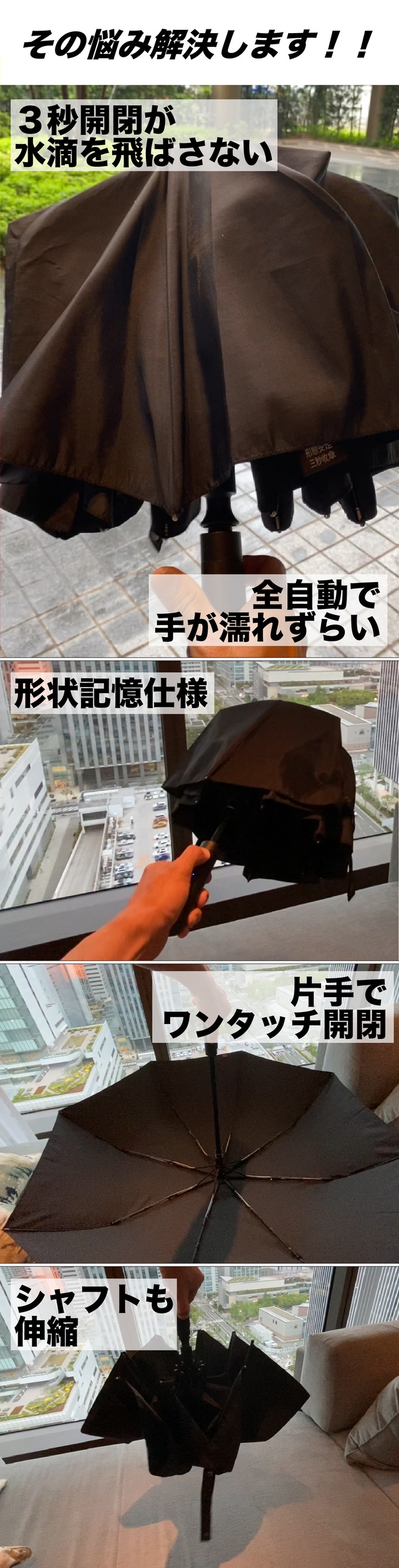 片手で楽々全自動のワイドな傘で憂鬱な雨の日、濡れる煩わしさが劇的に軽減