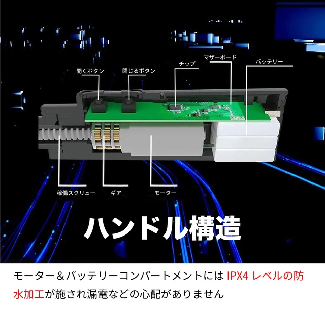 - 防風&錆びに強く、撥水性能&UV保護(UPF40)&IPX4防水(バッテリー)
