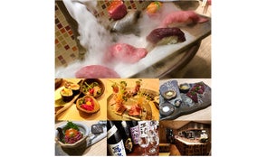 コース料理、日本酒付き飲み放題2回分のご提供!お客さんの名前の入ったkeep your お皿を寿司皿として店舗にて、もしくは郵送でプレゼント!