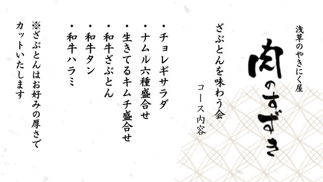 - 超希少部位「ざぶとん」をブロックで。4名様限定だから実現した、ボリューム感あふれる限定コース。