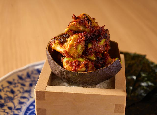 そのままで食べてアボカドの濃厚な口当たりを、有明海産の海苔で包んで食べると口の中で香りが広がります。