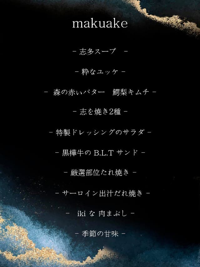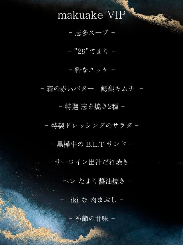 今回、makuake様に掲載頂くにあたって、通常販売しているコースとは異なる、ここでしか召し上がれない限定メニューを多数組み込んだ完全オリジナルの特別コースをご用意させていただきました。