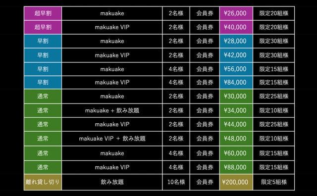 通常 makuake VIPコース 飲み放題付き 2名様分 +会員権