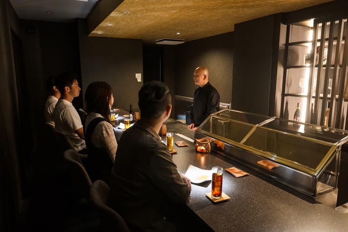 【串屋ゆとり】では、ライブ感あふれるカウンター席が特等席。