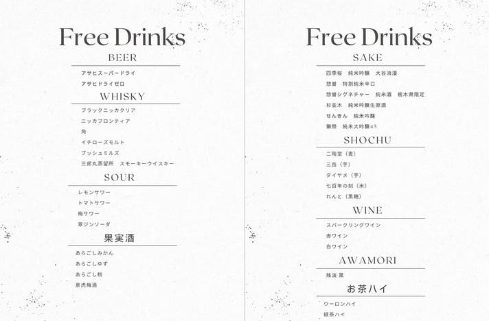 今回のリターンでは、会員権と共にMakuakeのためにご用意した特別なコースをお楽しみいただけます。 そして、全てのコースには、私たちの「本気」が詰まった特別な飲み放題がセットになっております。