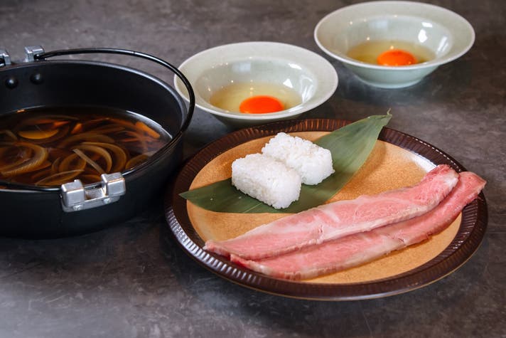 お祝い事や特別な日に華を添える、贅沢なすき焼きのコースです。美しいサシが見事な大判の和牛と濃厚なブランド卵が絡み合う、至福の味わいが口いっぱいに広がります。