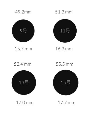 ●指輪9号は、直径が15.7mmで内周が49.2mmになります。