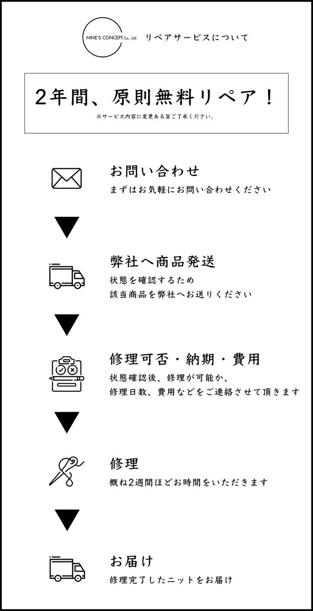 そんな想いから、リペアサービスもはじめました。単なる「ニット」ではなく、特別な自分になるための1枚になって頂きたいと思っています。