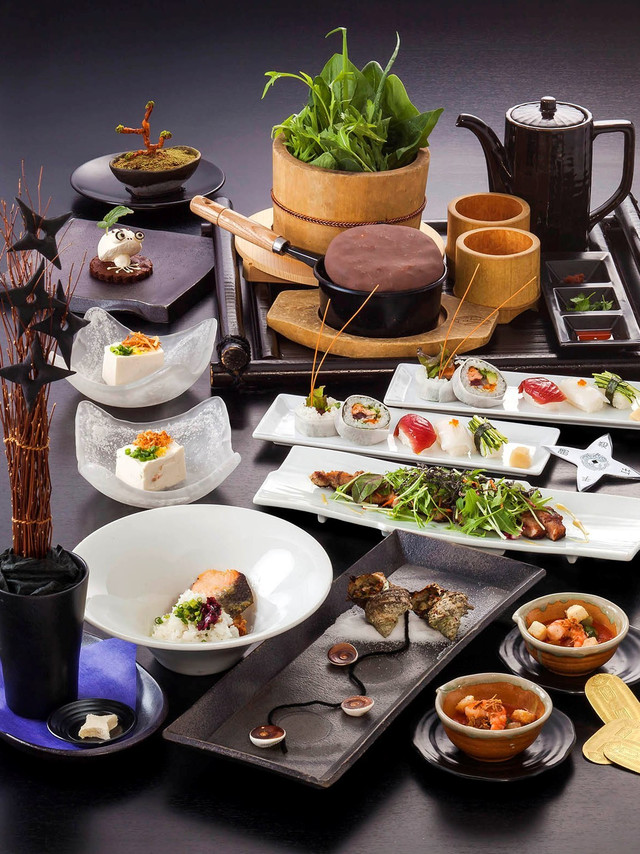 1階は和食を中心とした忍者屋敷をモチーフにした全面畳のレストラン、また地下1階は忍者たちによる忍術も体験できるエンターテイメントバーとなっています。