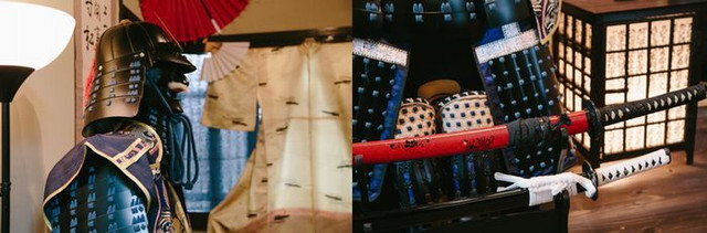 忍者の衣装やサムライの甲冑、忍者の出入りしていた隠し扉やからくり、五右衛門風呂など、日本の戦国時代が詰まった忍者屋敷にしています。