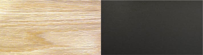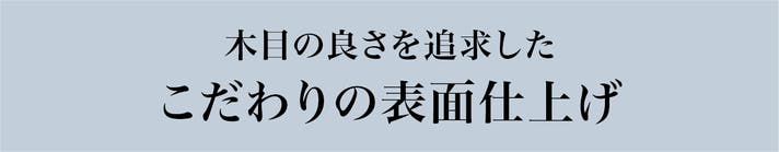 木目部分はホワイトオークの明るい木目を活かすことができる、ソープフィニッシュを採用しています。ソープフィニッシュは白い木肌の木の素材感や美しさをそのまま表現できる塗装方法で、オイル仕上げのように濡れ色にはならず、無塗装の木のような本来のさらりとした肌触りと色が楽しめます。黒い部分は傷がつきにくい高品質なメラミン化粧板を採用しています。国内メーカーの高品質の材料を使用し、長くご愛用いただけます。