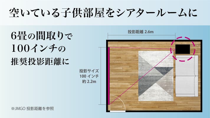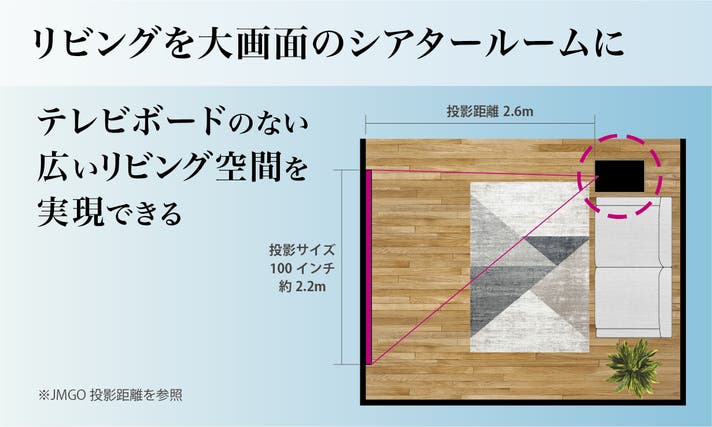 リビングに自然に馴染み、工事や専用ルームが不要。賃貸でも誰もが手軽にシアター体験を楽しめる、新しい暮らしのスタンダードを提案します。