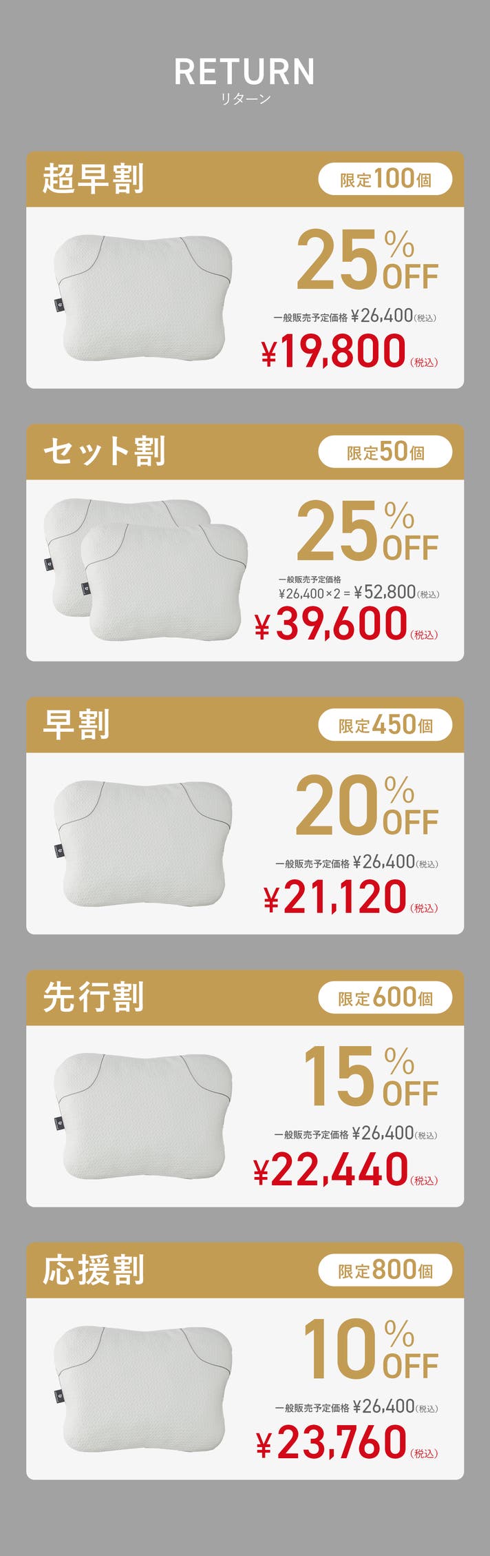 【製品の仕様・デザインについて】 製品のデザイン・仕様につきましはて、プロジェクト公開時点の予定であるためやむを得ず変更がある場合がございます。 【サポーター都合によるキャンセル・返品について】 原則として、サポーター都合によるキャンセル・返品は承っておりません。 (サポーター都合の例:サイズ・使用感が合わない、枕の高さが合わない、誤注文、長期不在) 【商品の不具合等による返金・交換】 以下の場合に限り、返金または良品との交換対応を行います。 ◾️対応条件:商品の初期不良またはお届けした商品がご注文内容と異なること( いずれの場合も未使用品に限ります) ※商品到着日を含めて7日以内にプロジェクトページの「実行者にメッセージ」よりご連絡ください。 ◾️対応内容:状況を確認の上、実行者判断により返金または良品との交換対応をさせていただきます。 ◾️返金額:リターン金額(税込)の全額 ◾️返品送料/再送料:実行者負担 【返金・交換をお受けできない商品】 以下の場合 はいかなる理由でも返金・交換をお受けできません。 ・サポーターの責任により破損、汚損が生じた商品 ・一度でもご使用された商品(試し置き・外観確認のみの場合を除く) ・事前にプロジェクトページの「実行者にメッセージ」よりご連絡をいただいていない商品 ・商品到着後、8日以上経過した商品(到着日を含む) 【交換をお受けできないケース】 ・同一商品の在庫がないなど、代替品をご用意できない場合 ※この場合、返金対応にて対応させていただく場合がございます。 【配送遅延とキャンセルについて】 本文中に記載させていただいたスケジュールは、あくまでプロジェクト公開時点の予定です。応援購入の性質上、配送遅延のおそれがございます。 原則として、配送遅延に伴う応援購入のキャンセルはできませんが、リターン配送予定月の月末を起算日とし2ヶ月を超えた場合には、希望者に限りキャンセルにて対応させていただきます。 以上の注意事項につきまして、あらかじめご理解・ご了承のうえで応援購入をお願いいたします。