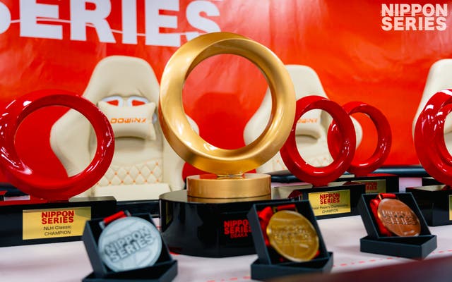日の丸をイメージしたNIPPON SERIESのトロフィー。各イベントの1~3位のプレイヤーには、記念メダルも贈られる。