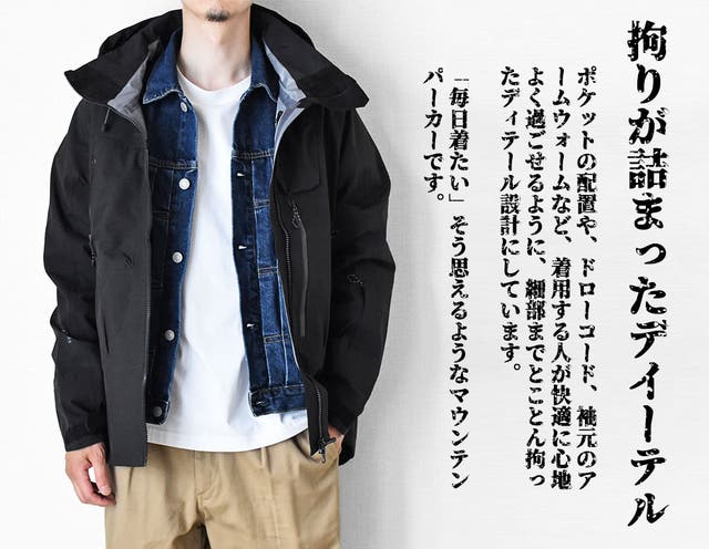 今回のマウンテンパーカーは多機能性を持ち、様々なシーンで活躍するアイテムです。