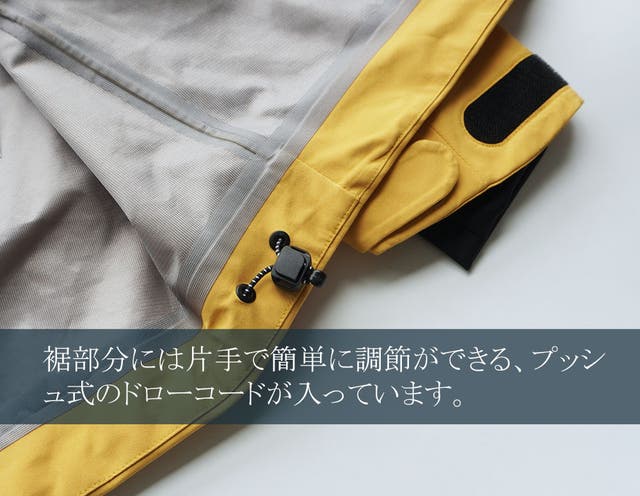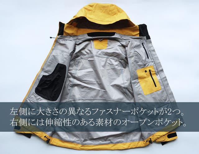 これにより雨や風の侵入を防ぎ、寒い時期でも内部の熱を逃がさずに快適に着用することができます。