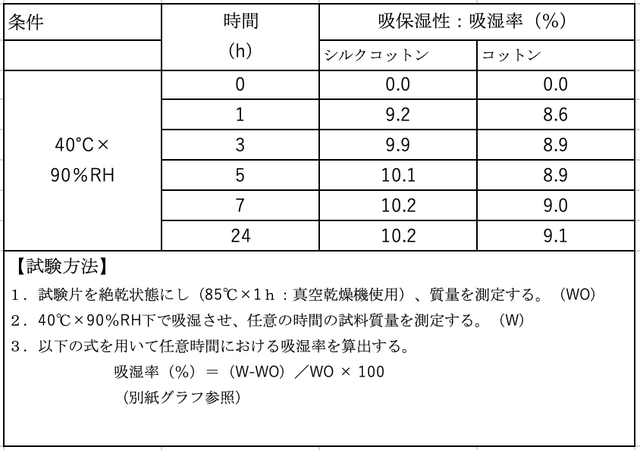 試験実施の結果、シルクコットンの保温率は32.3%でコットンの27.4%より上回り、保温性が高いことが確認できました。