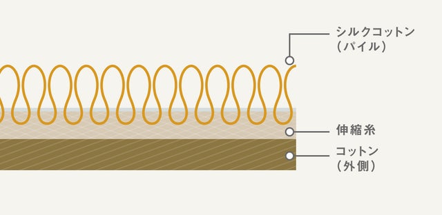 - 肌に触れる部分は上質シルクコットンのパイル、外側は丈夫なコットンを使用!